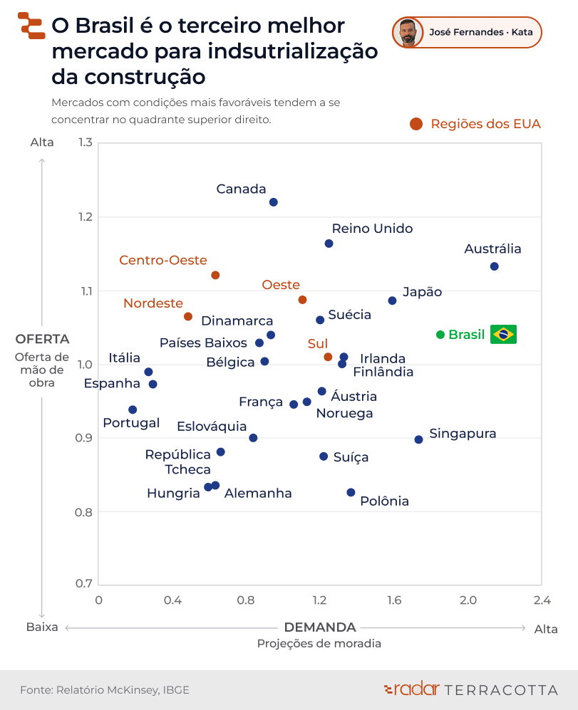 Essa combinação coloca o Brasil em uma zona tecnicamente favorável à industrialização da construção.