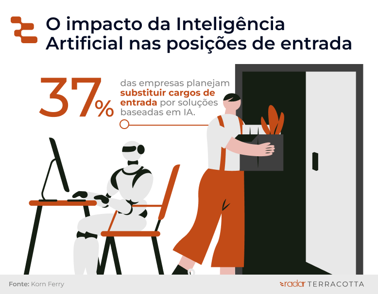Segundo pesquisa da Korn Ferry, 37% das empresas planejam substituir cargos de entrada por soluções baseadas em IA.