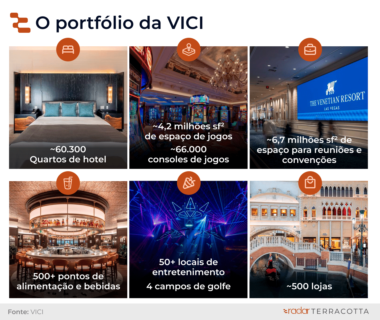 Mas por trás de tudo isso está também uma oportunidade imobiliária e a VICI Properties é um exemplo de como trabalhar isso.