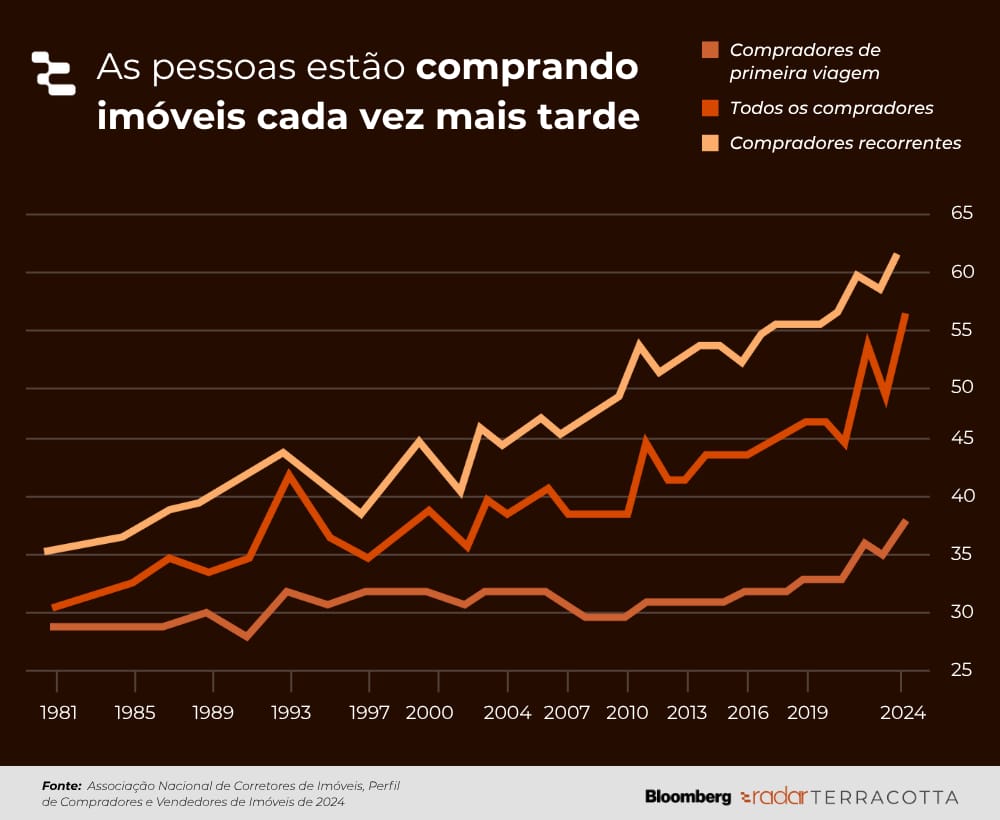 O que é reforçado com outro estudo que aponta o aumento na idade média do comprador de imóveis americano, fenômeno que acelerou na última década: