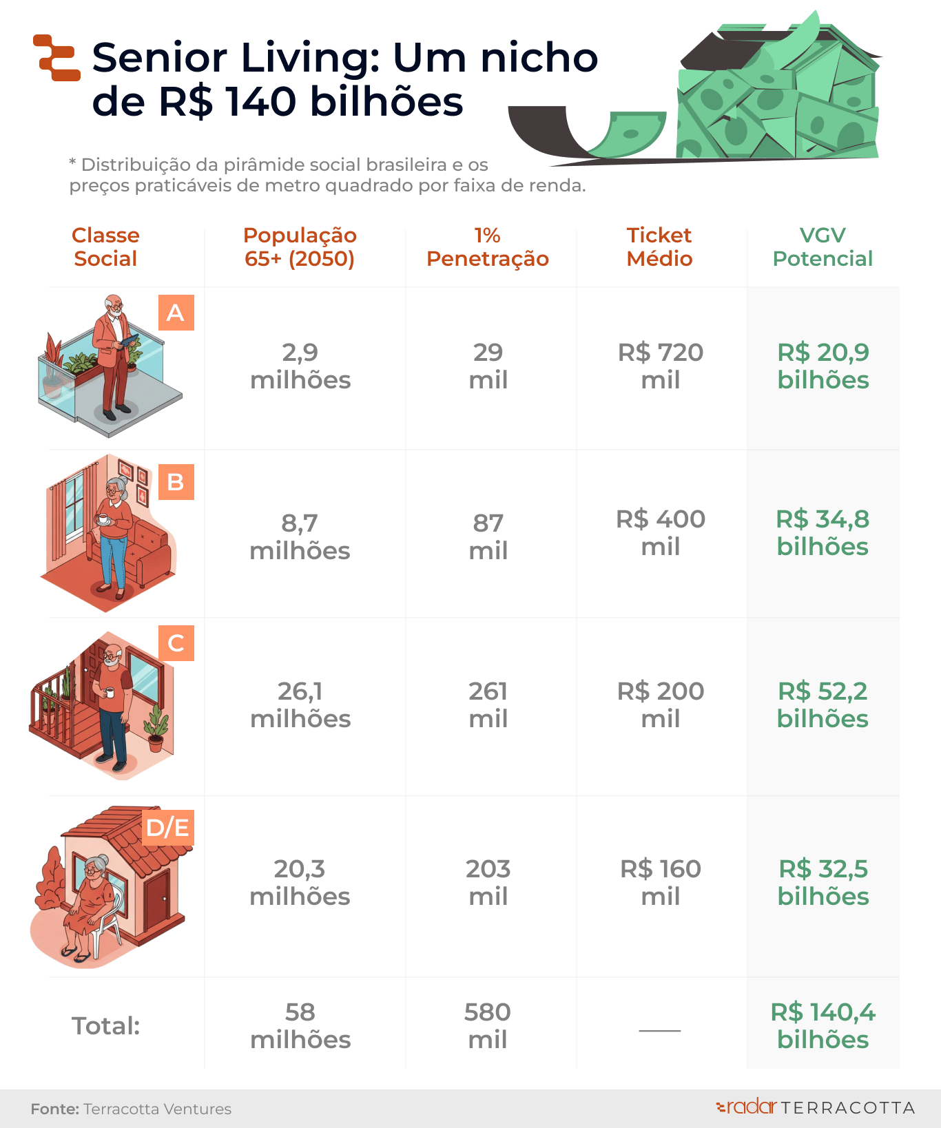 Se apenas 1% dessa população optar por moradias de senior living, falamos de um universo de 580 mil pessoas.