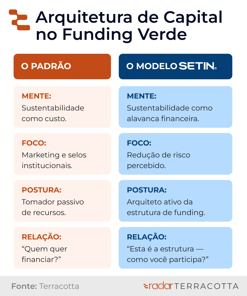 Por isso, sustentabilidade só se transforma em vantagem competitiva quando vem acompanhada de maturidade na estratégia de funding.