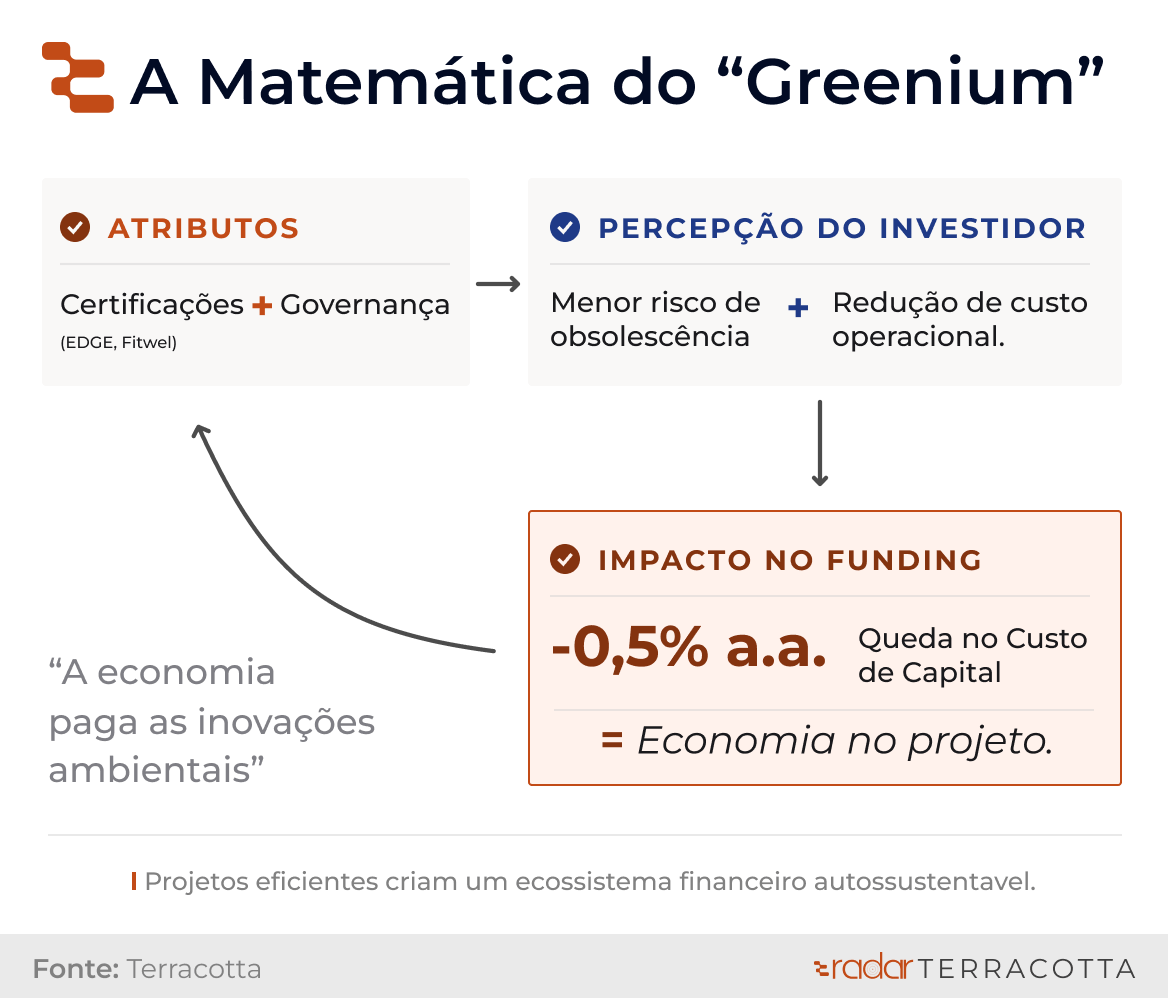 Quando um empreendimento consegue demonstrar atributos claros de eficiência ambiental e governança, ele pode ser percebido como um ativo menos arriscado.