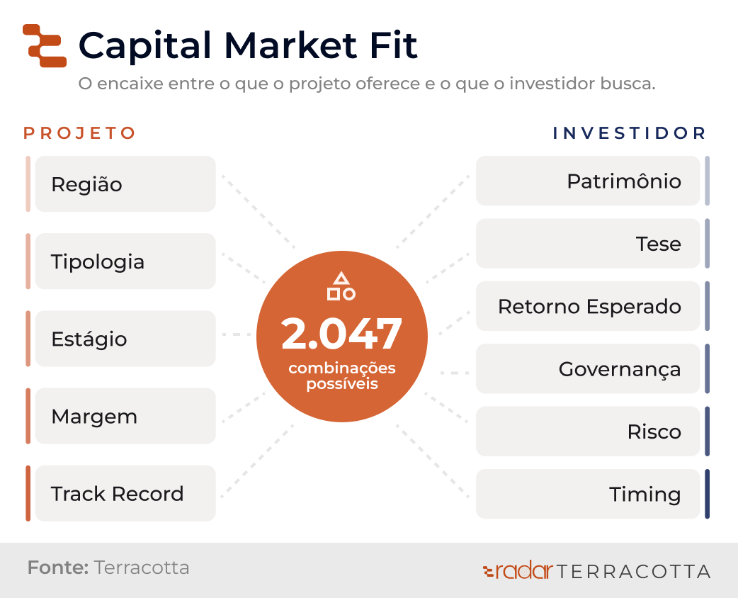 É a versão do Product-Market Fit para o mundo do capital imobiliário. O desafio de calibrar o que você tem com o que o mercado aceita — e saber quando ajustar o projeto, buscar outro investidor ou redesenhar a rota de captação.